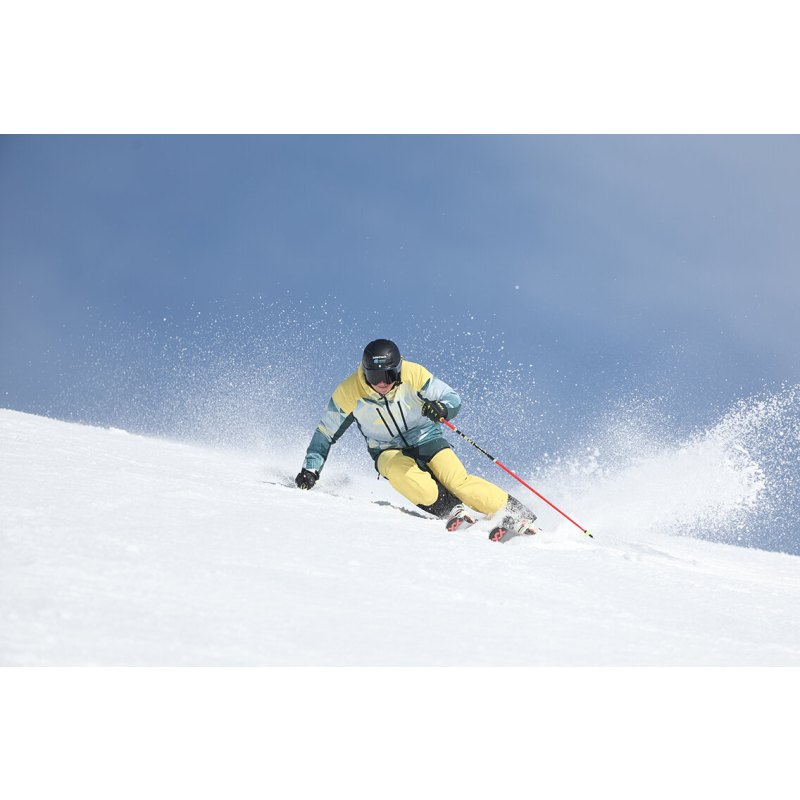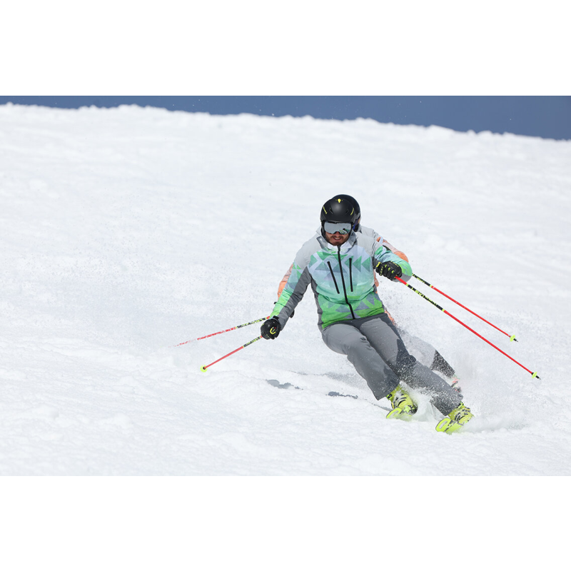 Уникалното съчетание на цветове и геометрични елементи прави якето истински акцент на всяка ски писта.